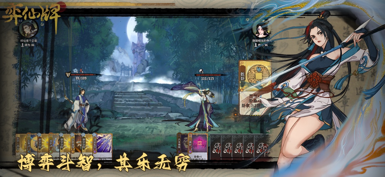 v1.4.3自从杀戮尖塔横空出世,开创了卡牌构筑类游戏的先河,市面上的卡牌构筑类游戏从此层出不穷。如果你对卡牌构筑类游戏感兴趣,不妨来试试这款弈仙牌。游戏以仙侠为主题,融入了卡牌构筑的元素与角色扮演的玩法。玩家将会扮演一位修仙门派的弟子,为了修行而展开历练。玩家需要从最基础的炼气期开始,一步步锻炼成长,游戏很好的将卡牌构筑玩法与休闲元素融合到了一起,通过获得强力卡牌与特殊遗物不断变强,成为这个仙侠世界的一方大佬吧!