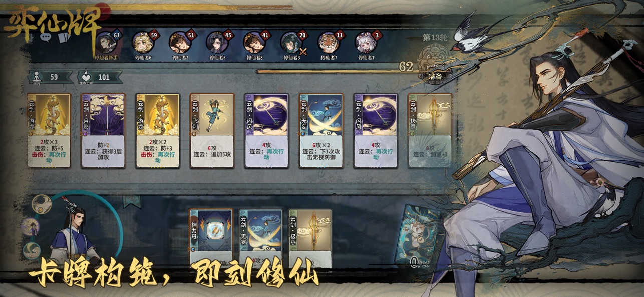 4、与人博弈:你的每个对手都是线上的其他玩家,大家一起从零开始构筑卡组。每场与对手的战斗都会检测你的卡组实力,多次战败就会被淘汰出局。运筹帷幄,登顶仙途,等你来战!
