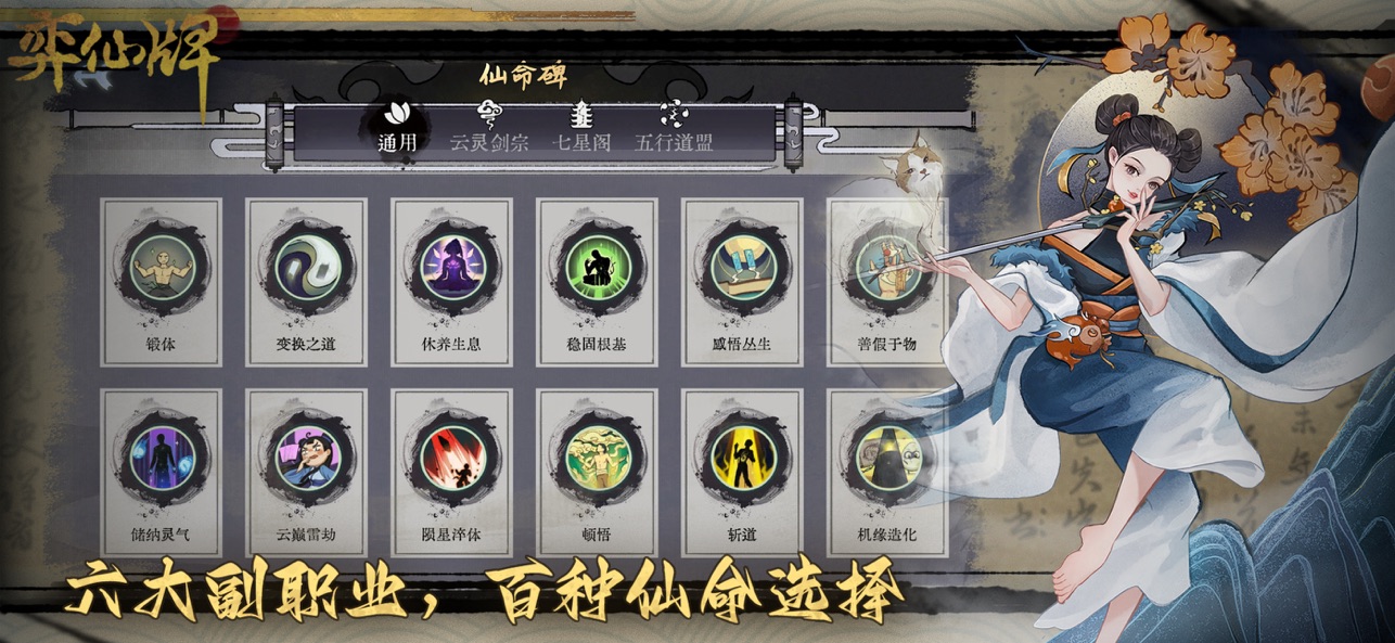 在每次突破境界时,会根据你选择的门派和角色随机出现多个仙命选项,你需要作出抉择,选择你的命运。