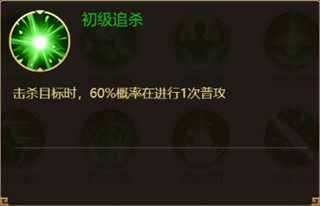 追杀战法的主要作用在于对目标使用物理技能取得击杀后,有60%/70%/80%/90%的机率再进行一次普通攻击。此类战法十分适合那些物理爆发伤害极高的猛将。