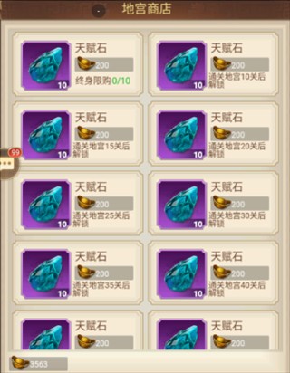 如需更多的天赋石资源,玩家可以在【地宫商城】花费【元宝】进行购置。