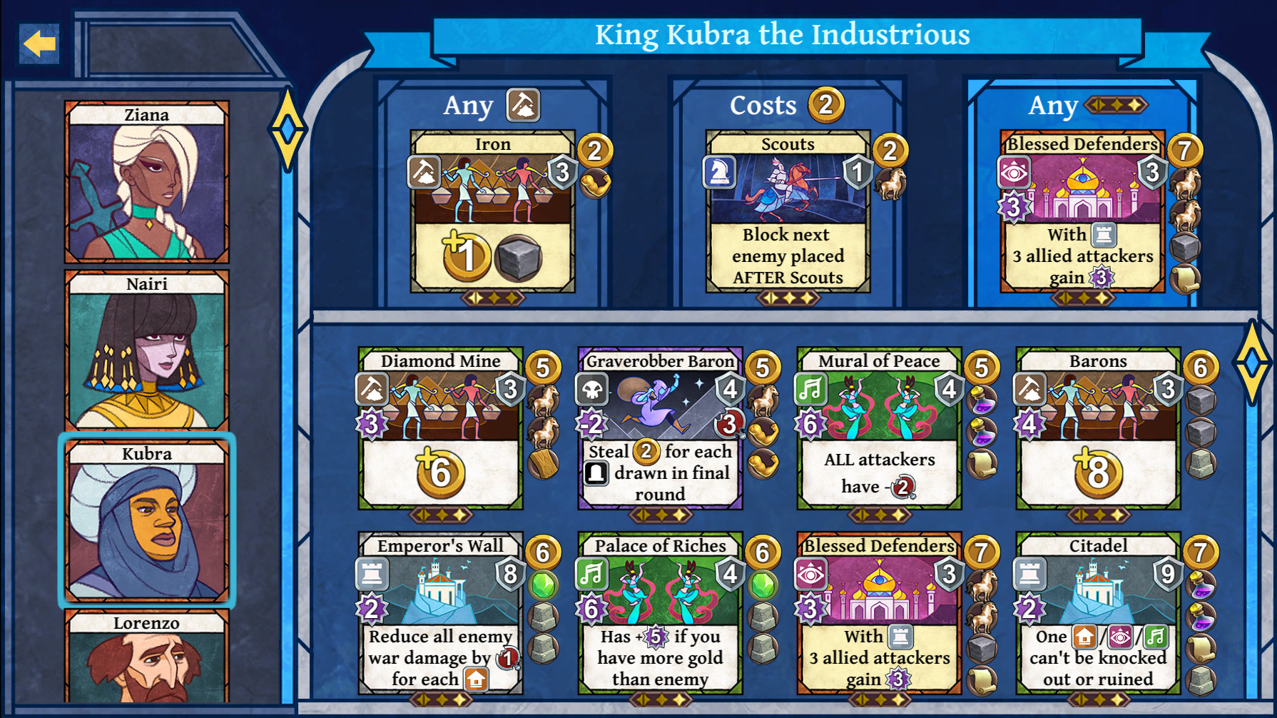 有12个独特的角色和数百张卡片...伟大的金字塔、战争大象、鬼祟的间谍、狡猾的商人等等等。