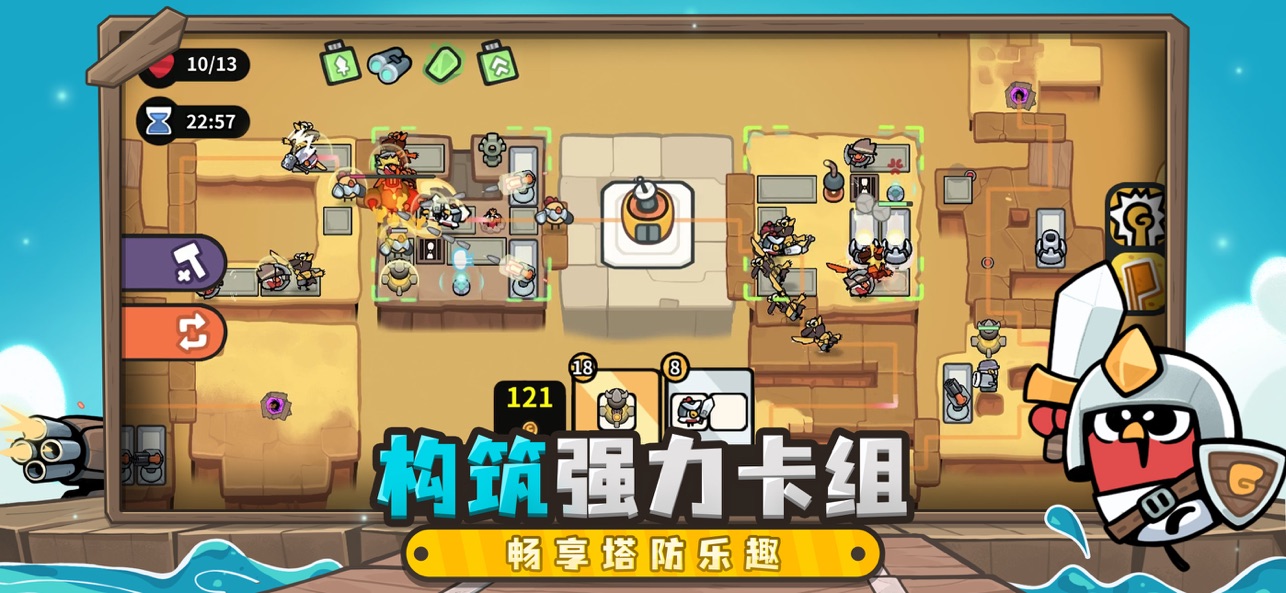 玩家将作为博尔德岛的指挥官,使用众多卡牌构建抵御防线,前往岛上各地冒险并收集“秘宝”,在不断变化的有限战场中抵御敌人的进攻,带领可爱雀仔取得胜利吧!
