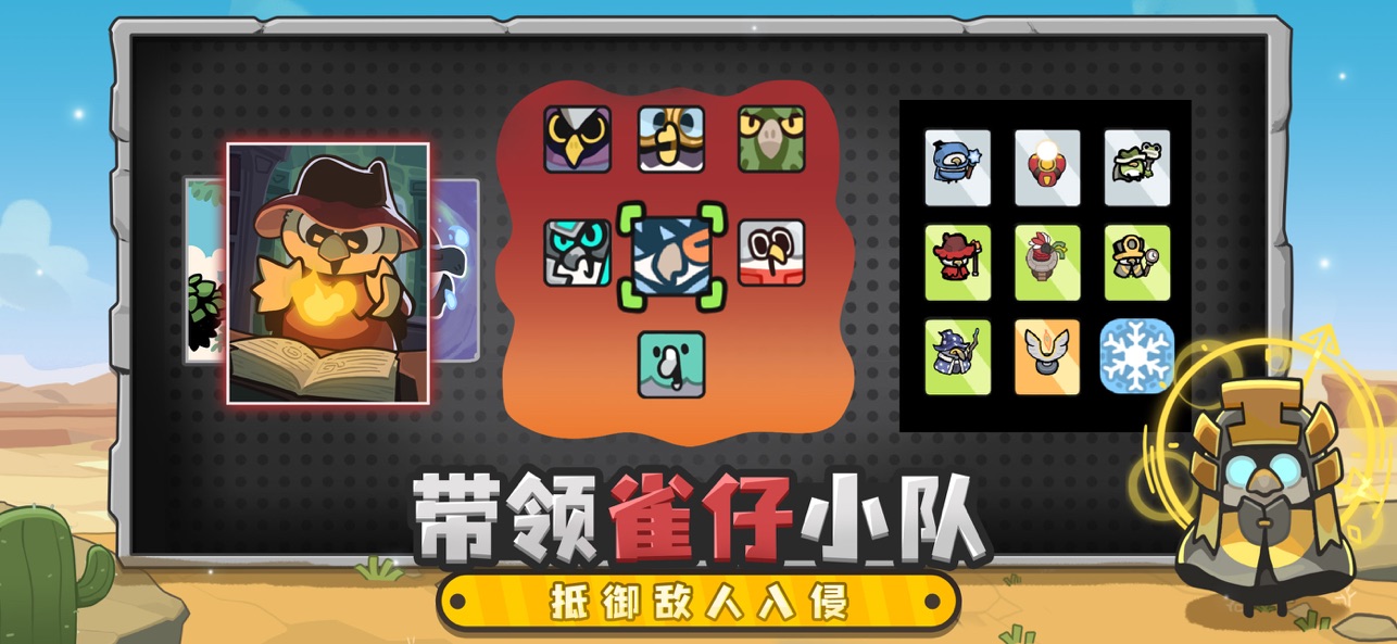 7支风格各异且拥有专属战斗技能的雀仔小队听你指挥,每队配备8个独特防御单位,世界之大,集齐小队,即刻出发吧!