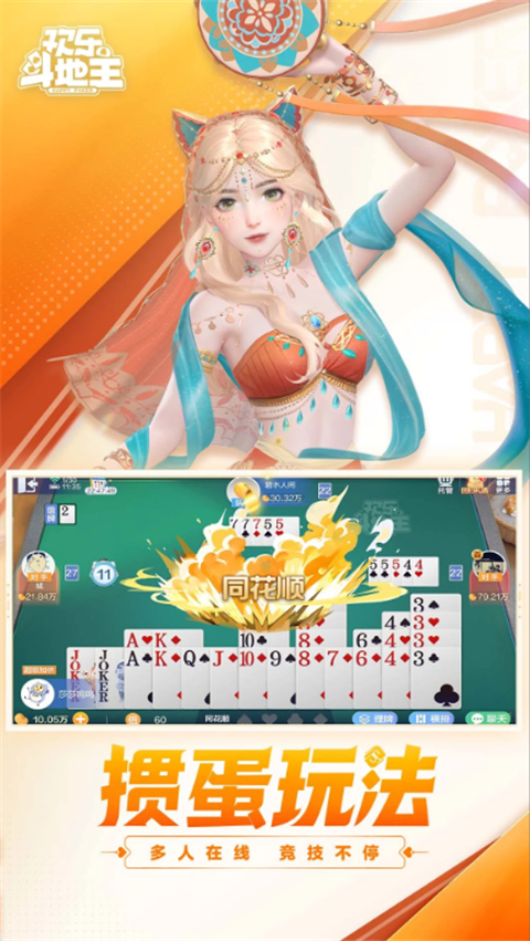 给你三颗心,能否一轮升星冲段?欢乐斗地主排位模式独创竞技分玩法,赢牌只是第一步,加倍、压制、打出特殊牌型都可以为你累积竞技分数,还有多种角色多样技能供你选择,萌宝贝儿、女神艾琳娜、帅大叔卡神,谁才是你的本命英雄呢。