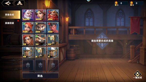 2、如下图,点击右下角的“一键合成”按钮来获得高星级英雄