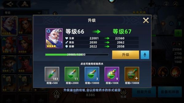 5、英雄满级后点击“技能升级”按钮,消耗相应的道具后就可以随机提升技能属性了