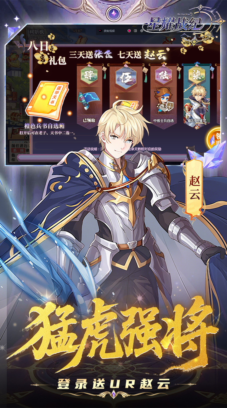 3、7天登录领取极品UR张飞,UR赵云,UR神器,豪礼福利送不停!