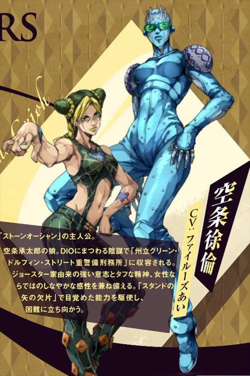 日本漫画《JOJO的奇妙冒险》及其衍生作品中的角色,第六部《石之海》的主角,历代主角团中出现的第一位女性JOJO,替身为石之自由。日裔美国人,空条承太郎的女儿,母亲是一位美国女性。