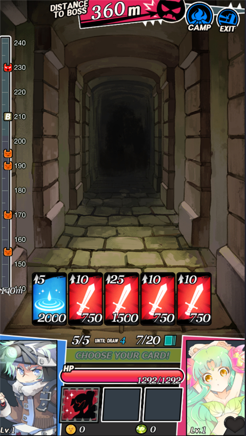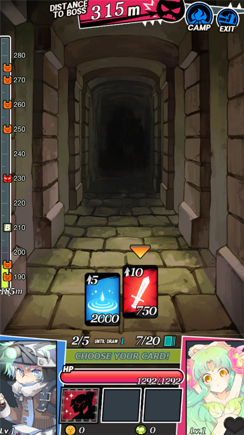 2、使用随机产生的卡牌探索地下城!