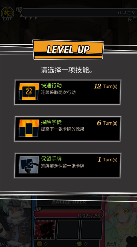 4、战斗结束后可以选择一个技能进行学习,之后继续游戏