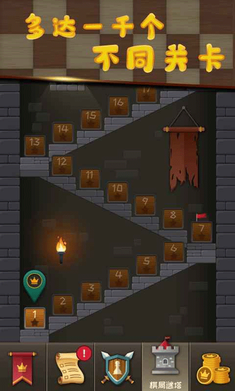 1、完成国际象棋的残局,帮助国王取得所有比赛的胜利,直登高塔的顶峰。