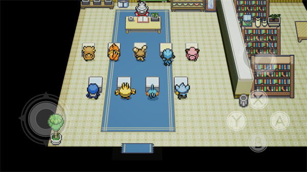 4、继续与盖洛母亲对话,随着剧情对话发展,通过左边的摇杆控制角色移动,右边的X键打开菜单,A键进行互动,来到房门外自由探索,外面有着很多不同的宝可梦可以互动,游戏自由度很高。