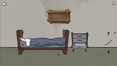 凶手进门,拿刀怼他,得到锥子,拿金属板顶到门上,进入地下室,右上角左边放锤子 右边放锥子,打火机点蜡烛,地下室右边出现了一扇门,桌上拿到恶魔赦令(收集要素)拿刀子割断右边的吊环,场景回到2,发现门开了。