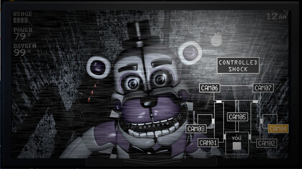 1、欢乐时光弗莱迪(Funtime Freddy):他会在cam03和cam04之间活动,玩家需要快速关门以应对他的指令。