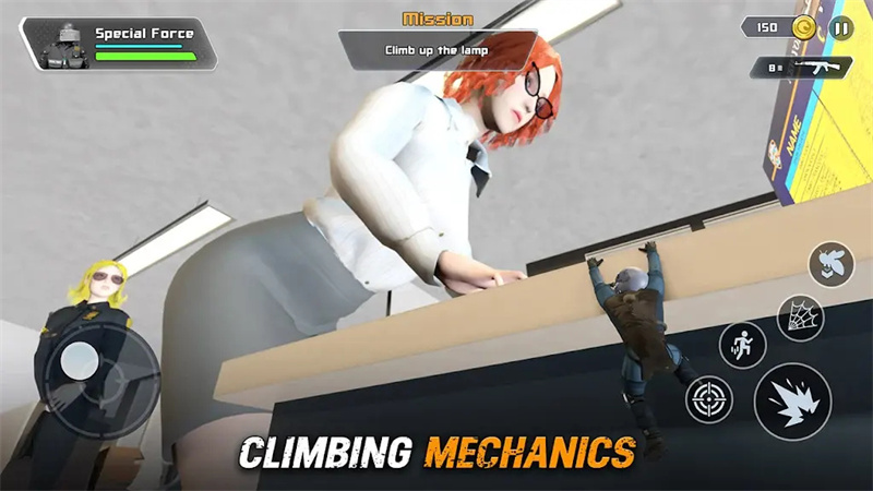 1、动态环境交互:攀爬高耸的障碍物,在家居物品上荡来荡去,探索周围超大世界的每个角落。