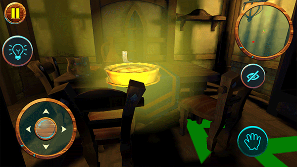 当你在寻找线索的时候千万不要发出声音,一旦被发现了游戏就结束了,你需要趁他不注意找到通往密室的钥匙,当他在附近你需要马上躲起来,比如柜子里、床底下,等他离开后再出来,整个游戏紧张刺激,喜欢这类游戏的玩家非常推荐试试。