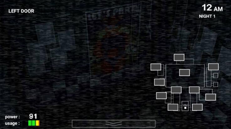 在第 1 到第 3 个晚上,Frenni 会一直站在表演舞台上,整晚什么也不做。除非玩家电量耗尽。如果耗尽,Frenni 会在几秒钟后出现在左边的门口,咯咯笑着,眼睛闪闪发光。之后,她会突然出现在画面中,在你面前玩弄她的乳房,导致游戏结束。