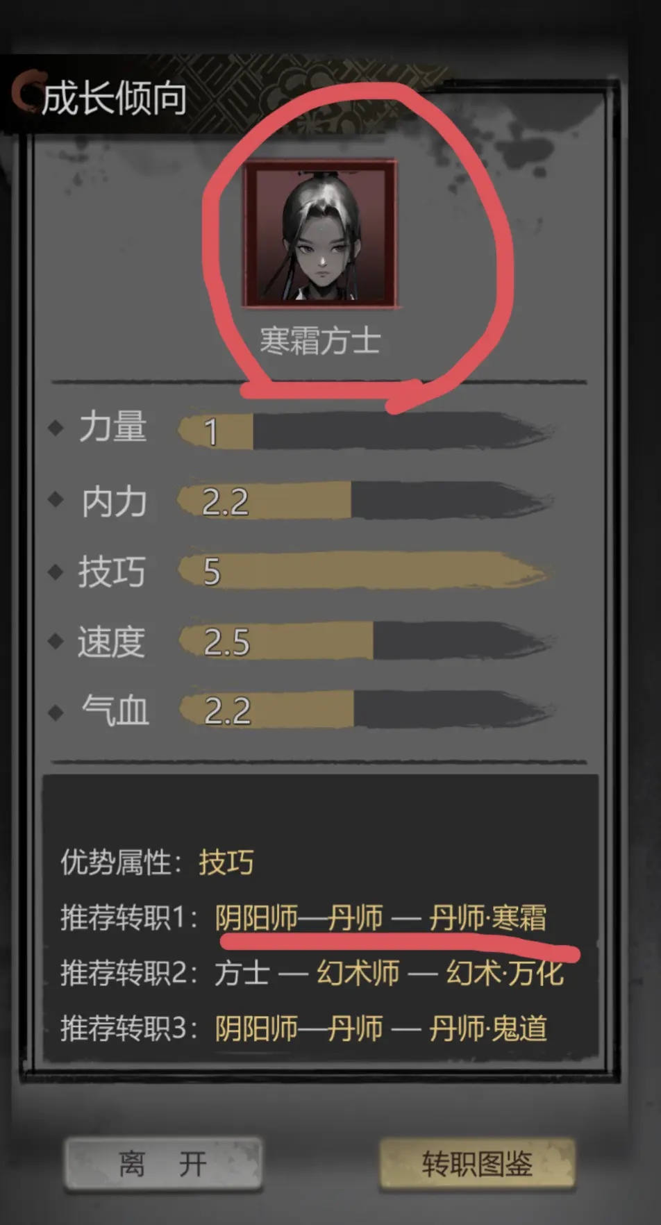 如图所示,点开成长倾向,名字就叫寒霜方士,说明最适合寒霜,推荐第一条也是寒霜。