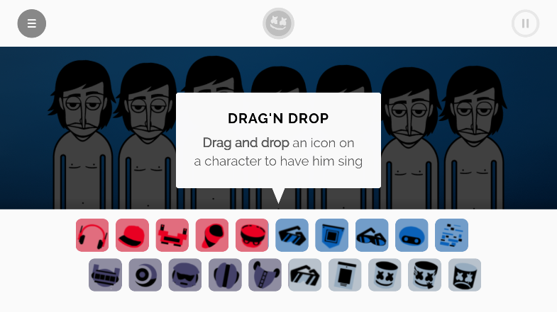 节奏盒子Marshmello模组下载手机版不仅可以让我们的玩家体验到《节奏盒子》里最经典玩法,你只需要通过拖拽音效标签为卡通角色赋予声音。而且我们还可以通过节奏盒子Marshmello模组最新版本来自由编排电子乐节奏,从而创作出属于自己的音乐歌曲。