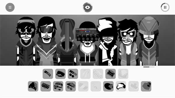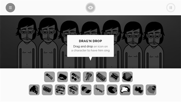 4、进入游戏后推拽不同的音色乐器给人物来组成演奏,完成度越高上方的眼睛周围黑圈也越多,当完成时就能解锁隐藏动画。