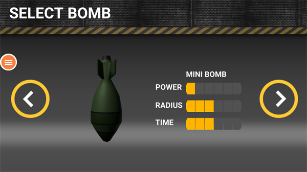 1、下载后打开游戏会直接进入选择核弹页面,每个核弹的威力、时长都是不一样的。