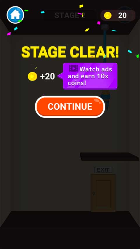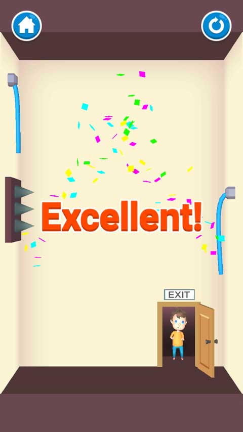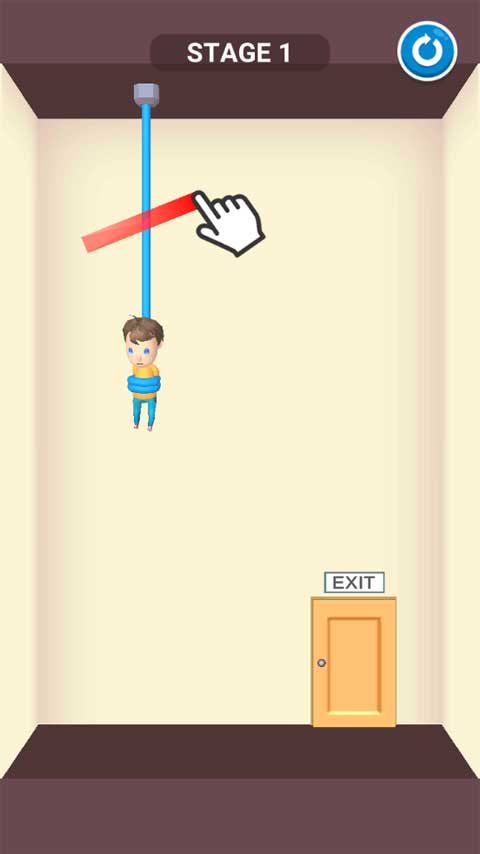 这关卡只是简单的用手指划过吊起小男孩的绳子,小男孩被解救之后就会自动走到出口,关卡通过。