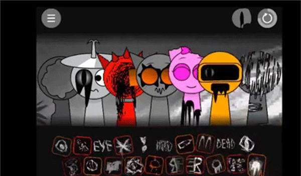 2、整体画风呈现虚无破坏,死气沉沉,这是一大特色,底下有多个不同的装饰,玩家将这些选择性添加至小人身上,制作奇妙的音乐。