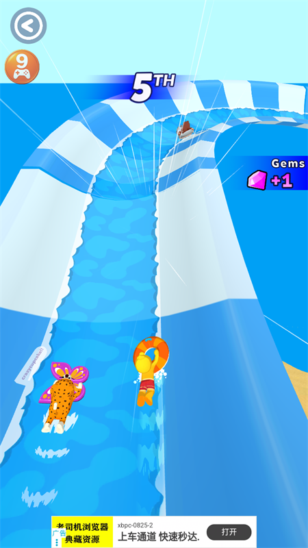 4、在滑道上快速的滑行追上对手,进行碰撞努力的将对手撞出去,获取较高的分数争夺排名。