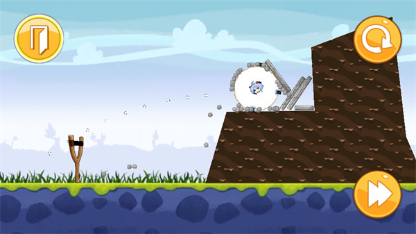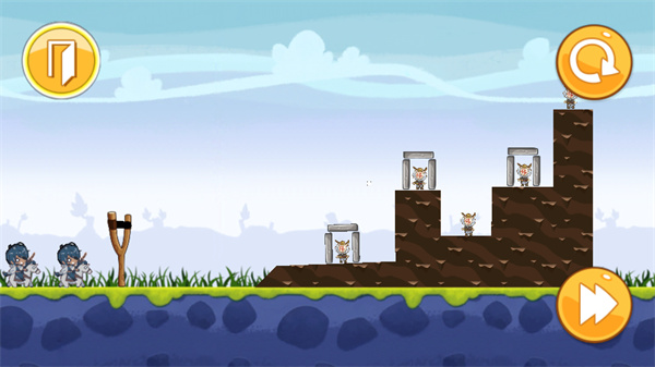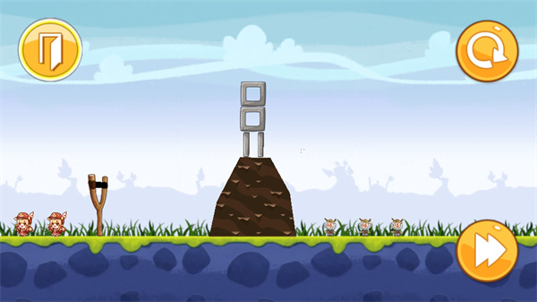 2、游戏的操作很简单,你需要在左侧拉动弹弓,然后攻击右侧的玩偶,后面还有会一些障碍石板哦。