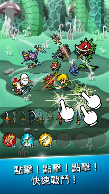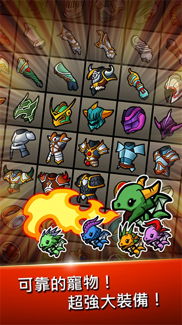 以上介绍了该游戏的主要作战形式,当然前面我们也说到了,前期都是靠手动刷怪才能积累起购买自动攻击的武器,因此在这里,点击人物头像便可进入到角色画面,在这里你可升级角色等级,从而增加每次点击时的角色的攻击威力,再而通过购买不同历代的名剑,以获取高额的点击伤害,这些也都是可以升级强化的哦。另外,玩家还能养育各种精灵小宠物和开发各种装甲防御哦。