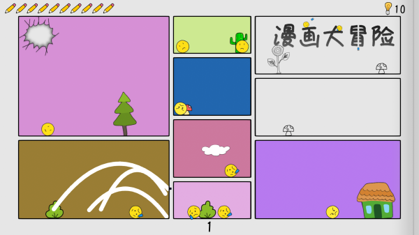 漫画大冒险官方正版是一款手绘风格的休闲益智手机游戏,漫画世界被悲伤大魔王污染,失去了往日的欢乐,为了恢复这个世界的欢声笑语,你毅然决然的开启了一场冒险之旅。游戏的玩法非常简单,玩家操控我们的的主角开心黄豆在地图中来回移动,并且进行跳跃、射击等动作,进入什么地图都是随机的,玩家还可以使用橡皮擦等道具,擦掉边框进入不同的格子。