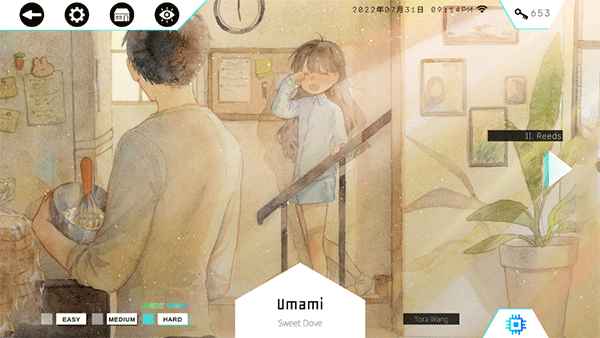 3、演奏两级后,六边形音中六条小短线的判断线。我不确定接下来的六条小判断线是否会旋转。速度的默认设置是OK,很有趣。这个故事是关于在一个层面上解锁记忆。我不知道是否有多个故事。