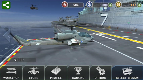 4、强化系统也做的非常出色,可以在机库中根据直升机的特性,更换机枪火箭弹等武器以及雷达、助推器等特殊的设备,帮助你的游戏进行的更加容易。