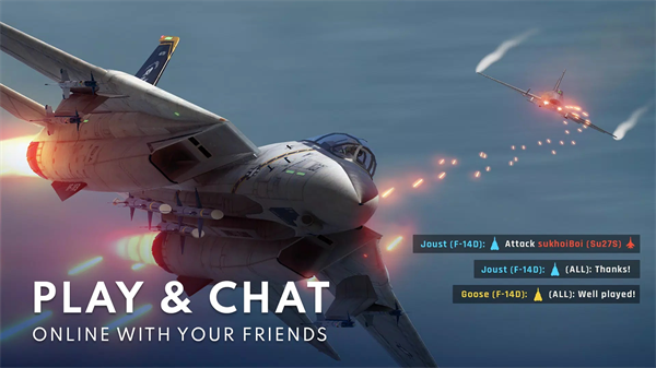 好友系统正式开放,邀请好友合作对抗进行在线游戏,包括: “4V4团队生存竞赛”、“4V4夺旗战”及“4V4基地保卫战”,在激烈的空中战斗中,根据不同战术策略下达战斗指令,全员集火攻击最优化火力输出,摧毁敌方基地,夺取制空霸权!惊险刺激的“8人生存战”、“8人自由混战”考验瞬息万变的战场掌控能力,对抗各自为战的敌方战机的强势冲击,在战斗中成长,掌握过人的飞行本领!还有“自由漫飞”休闲模式,支持战机编队飞行表演拉烟,执行特技飞行动作,展示酷炫的组队风采。