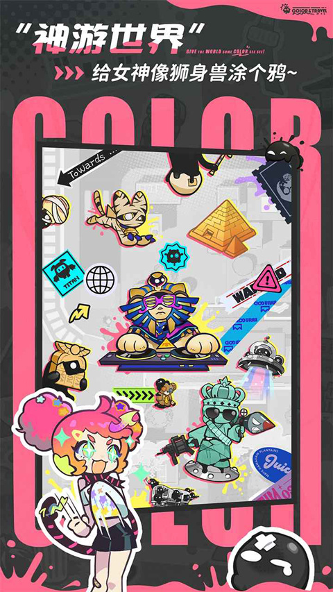 在游戏里环游世界,与各个景点产生意想不到的神奇交互,留下独特的“旅行回忆”。女神像的导弹?法老家的小黑喵?通通一把抓住,顷刻之间交由染料炼化!山姆大叔家的变O金刚不过是染料桶边上的陪衬,铁面法老三人组射出的激光也只是过隙的掠影。脚踏霓虹的偶像光环,从此刻起,掀起这个世界全新的色彩风暴。