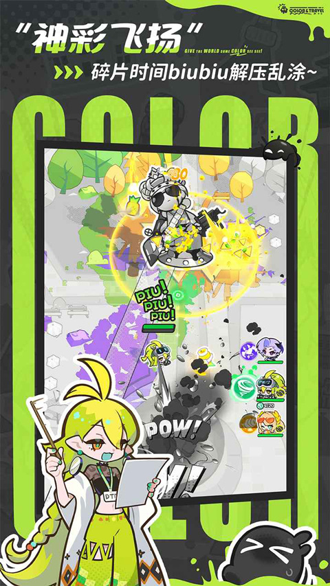 乱涂彩世界游戏是一款非常解压的射击游戏。游戏设定在一个虚构的色彩世界中,玩家将扮演拥有特殊染色能力的神明角色,通过对战的方式让失去颜色的大地重新恢复生机。游戏采用非常惊艳的美式漫画风格,每个角色都拥有独特的造型以及性格,玩家将享受到顶尖的射击游戏体验。
