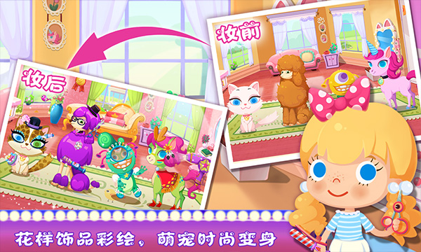 糖糖宠物音乐派对手机版中玩家通过为宠物设计造型、搭配服饰及乐器参与舞台表演等方式和各式各样的宠物伙伴一同探索派对场景。玩家自己也可以在服装店中自由更换造型,可以为宠物进行剪毛、洗澡等护理操作,并通过甜品制作、茶会布置等互动加深与宠物的羁绊。