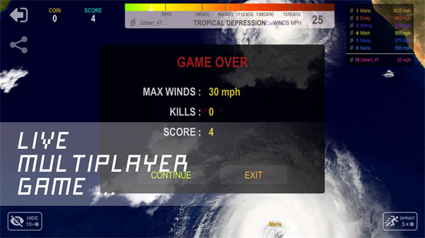 飓风大作战的玩法和贪吃蛇的玩法相类似,在这里玩家主要是以后能量的收集来完成自己的最终化目标,操作方式就是滑动屏幕进行移动,右下角是移动加速按钮,但这里需要玩家们注意一点的就是你的能量来源是空气中或海面上的水和热能,尽可能去猎杀比你规模小的飓风会使你成长的更快!
