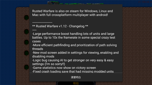 铁锈战争外星科技最新版是铁锈士兵外星科技mod,该mod的战役、遭遇战、挑战地图、生存地图多个玩法模式都进行了新地图的添加,并且还有测试地图,提供给玩家去进行游戏内容的测试。但是该作是不带沙盒模式的,玩家在游戏中无法体验该模式。