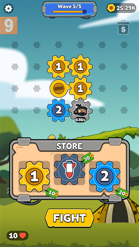 3、备战阶段,玩家可以购买齿轮并放到盘面上。