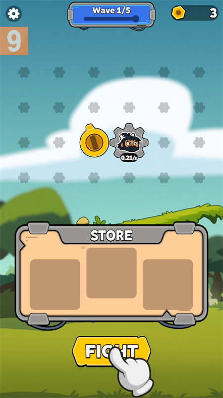 1、打开游戏,我们可以根据系统提示在合适的位置上加上齿轮,让齿轮带动兵种生成,然后点击fight。