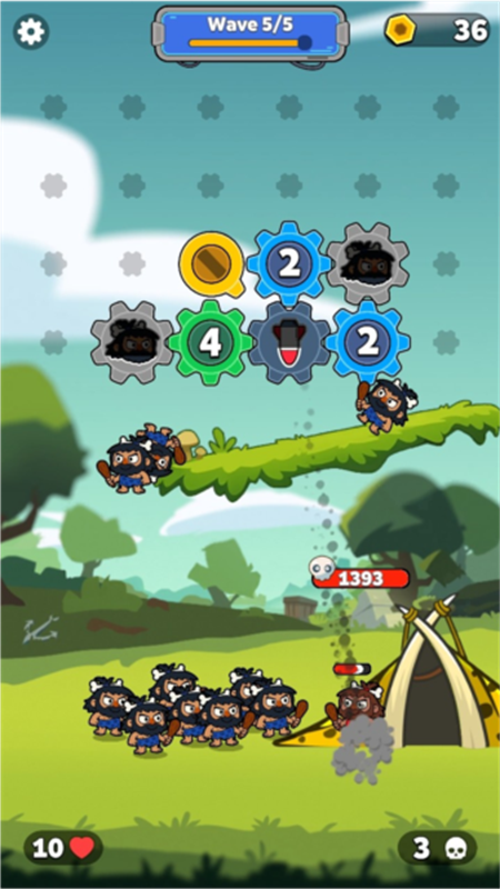 6、齿轮旋转一定周期后会生效(产出士兵、释放法术或产生辅助效果),击败所有敌人则进入下一轮。