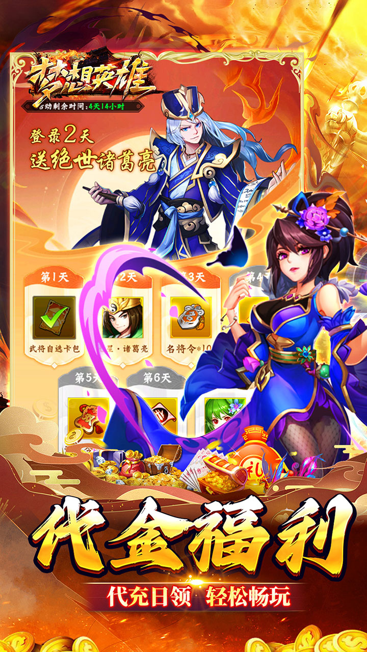 4、新服狂欢,次日登录领取神将“七星-诸葛亮”,7日领取“济世-华佗”。