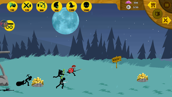 第九关:巨人关卡,先养两名剑士,操控其中一名跟巨人绕走位,另外一名备用,经济上来后全养弓箭手