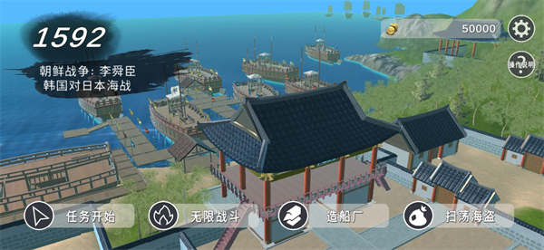 1592朝鲜战争李舜臣破解版不仅能够很好的还原出16世纪末赌上东北亚三国命运的壬辰年战争而且更是加入了一系列真实的炮击声、鼓声、BGM等,无疑很好的提升了游戏的代入感。此外,该游戏还加入了非常丰富的游戏阵法,比如说:一字阵、尖字阵、鹤翼阵等等并且还支持对各种船只升级操作,从而使得玩家的水师战无不胜攻无不克。