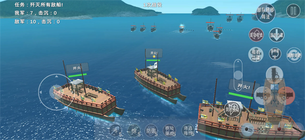 指定我军的多个舰船后。支持同时移动。 位置固定。 自动战斗。