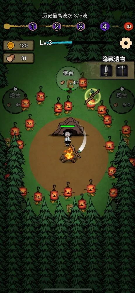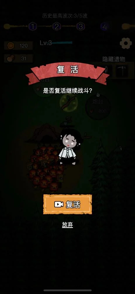 4、建造被击毁是可以重新建造的,角色生命也可以在篝火圈内恢复,所以后面波次主打一个放风筝获取buff加领地阵地战;