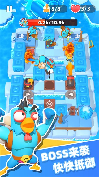 草原上的弱鸡、盾鸡,雪地上的大胖鸡等等,随着地图的解锁会出现更多不同类型的小鸡来挑战你的陷阱布局!