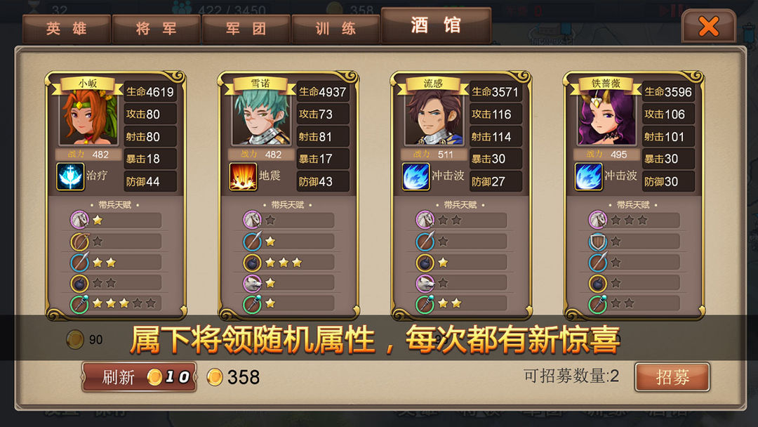 只招募三星以及以上将领(不要法师),军队混合编制(好处减少弱点)。